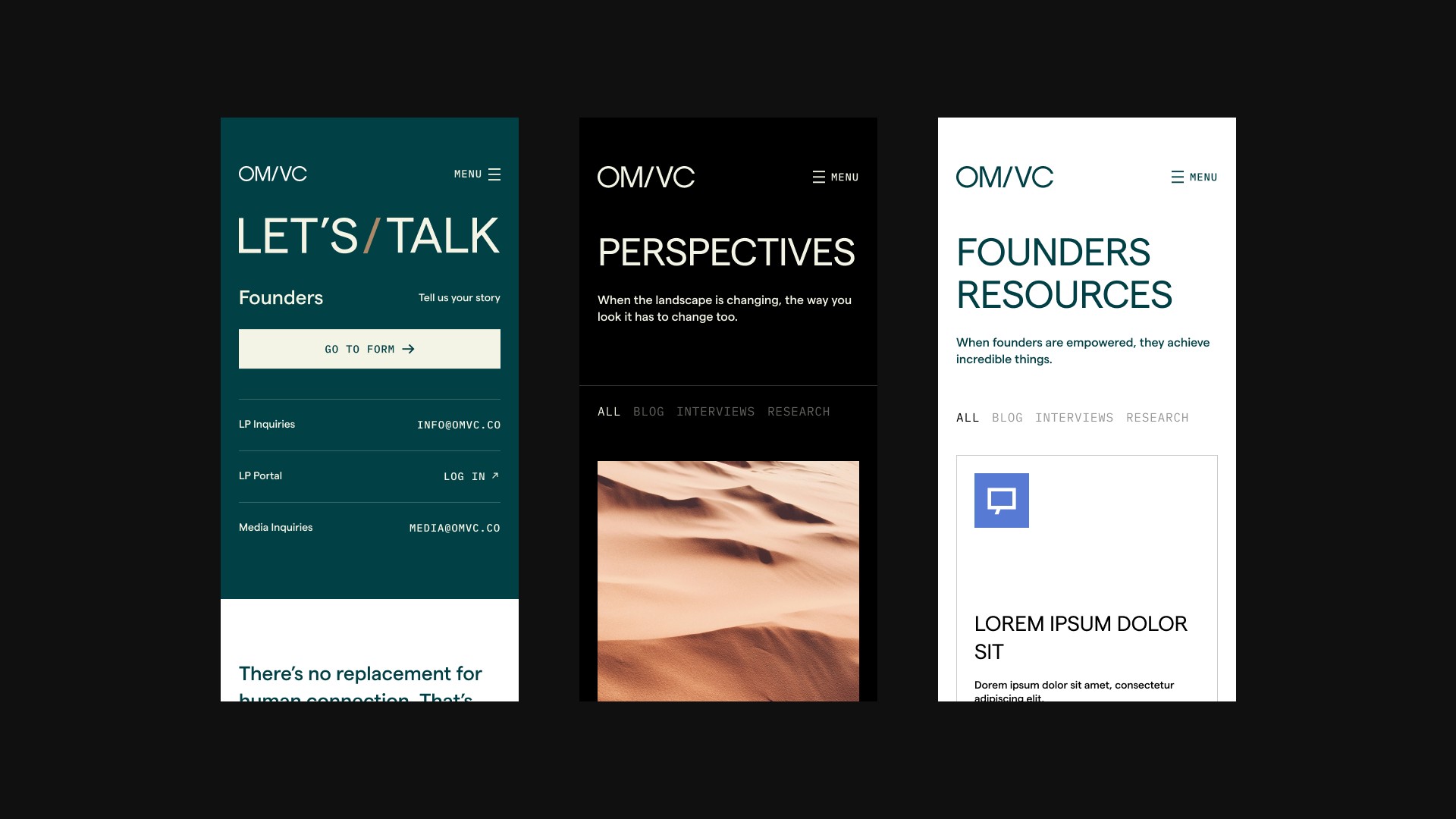 As part of an agency team, I collaborated with my lead and Creative Director to design a new website that translated OMVC’s disciplined, founder-first approach into a modern, credible digital presence.