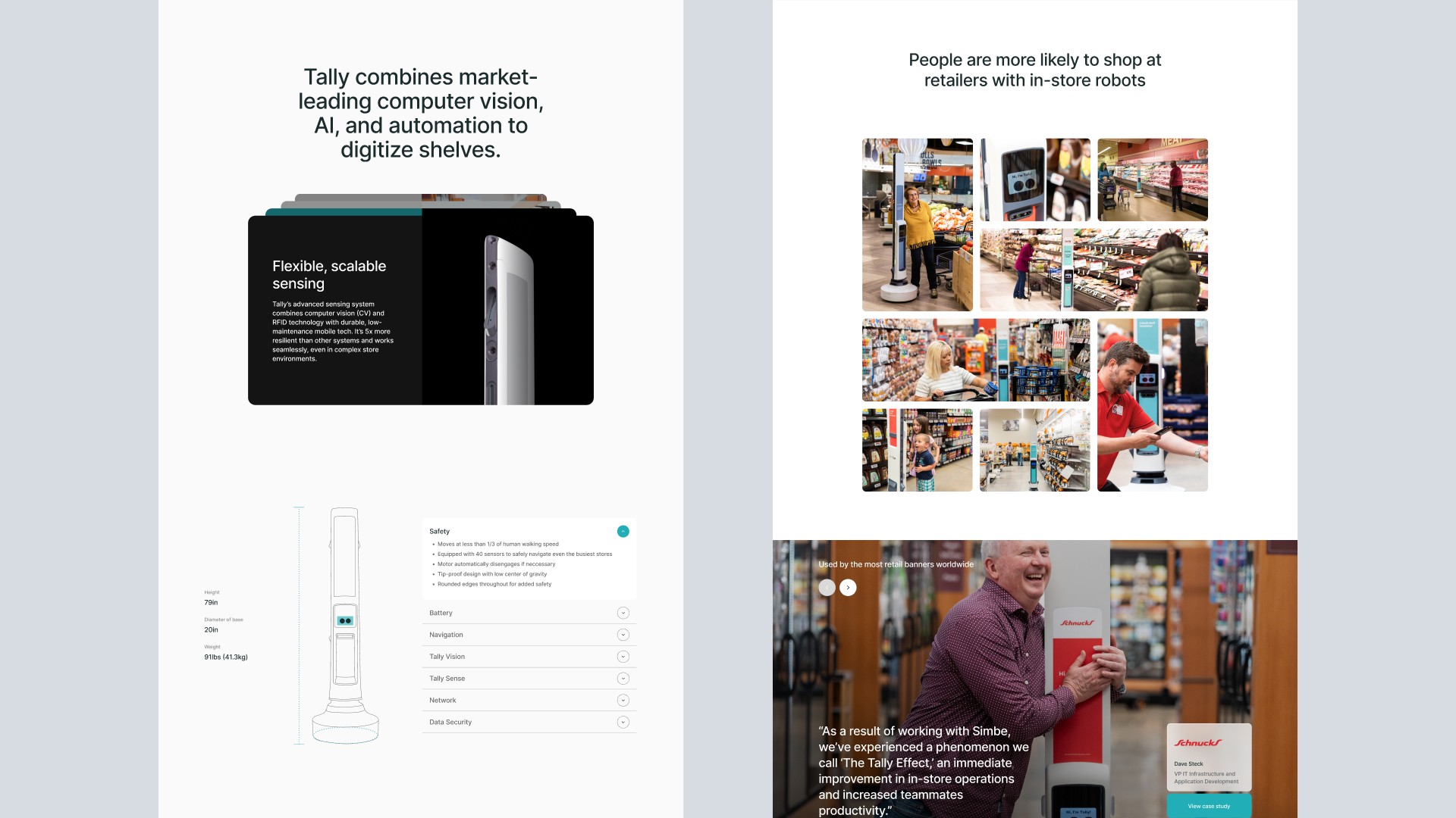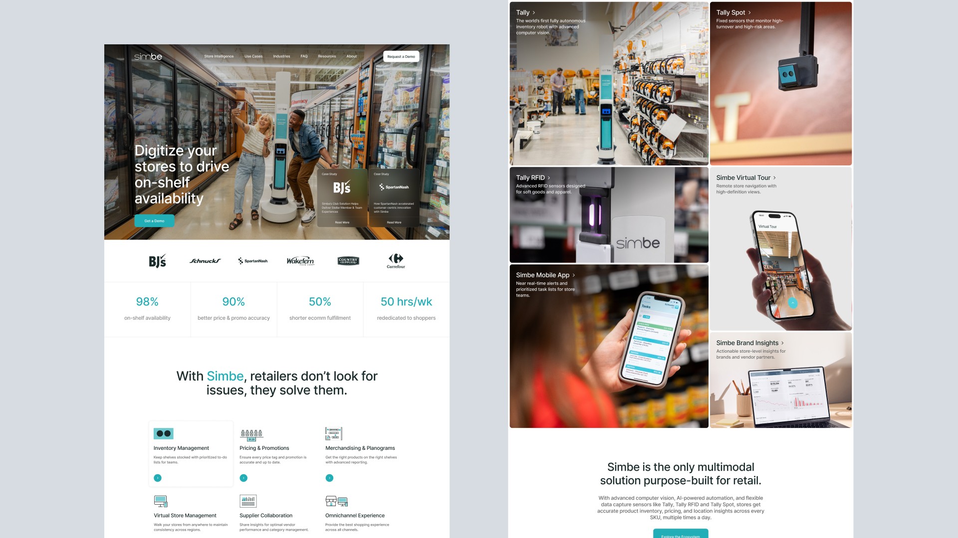 Simbe Robotics needed a website redesign to better reflect its evolution beyond a single product and communicate the value of its broader platform. The goal was to shift perception toward a scalable enterprise solution while improving demo-driven conversion.